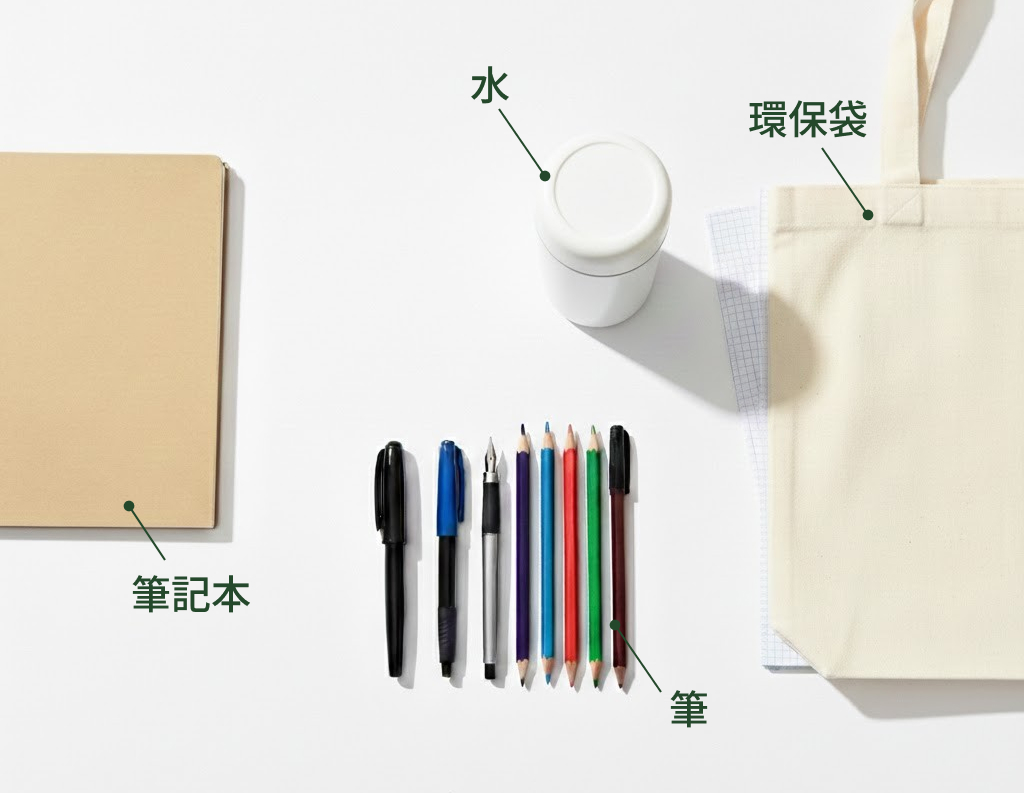 - 各種筆、筆記本(紀錄重點)