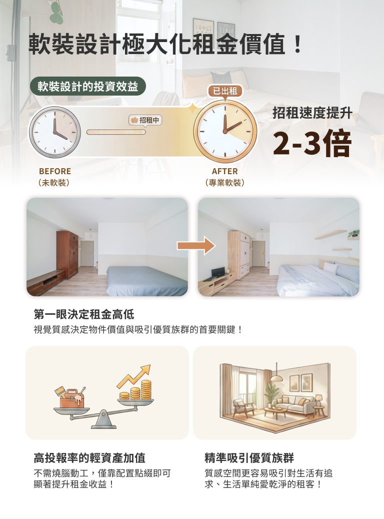 必要時,可協助安排專業的輕裝修或軟裝設計!