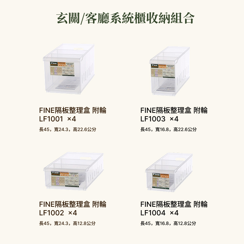 FINE隔板整理盒 附輪 LF1001 x4 個 (長45,寬24.3,高22.6公分)
