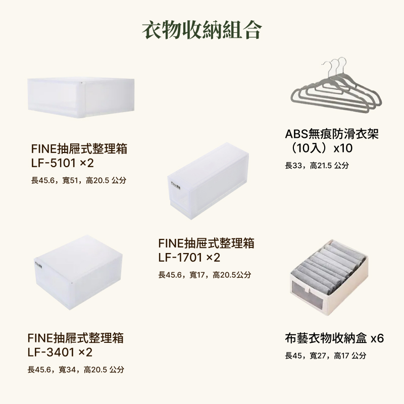 - 布藝衣物收纳盒 x6個 (長45,寬27,高17公分)